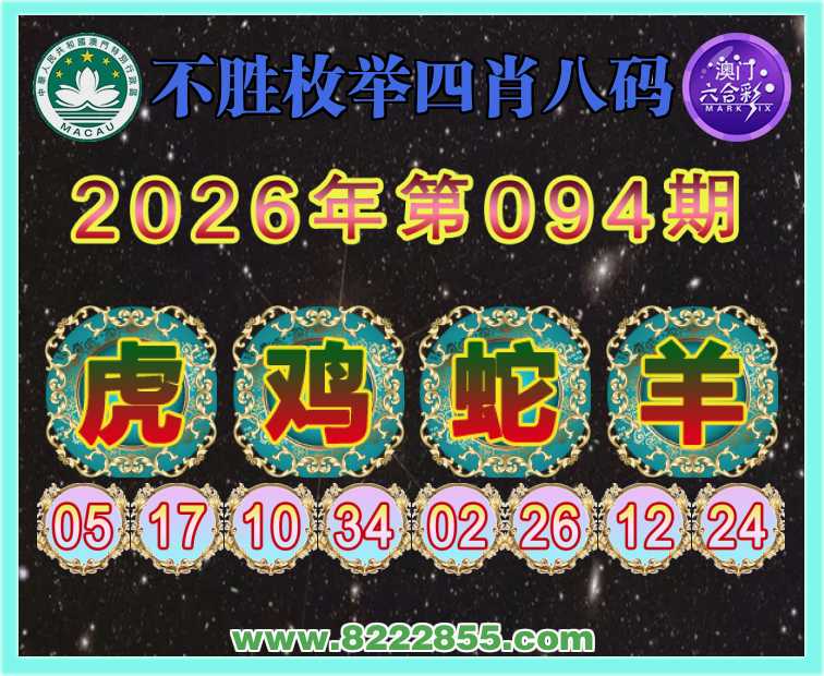 094期:《不胜枚举》 🧣四肖八码🧣【鸡蛇羊】开:虎17