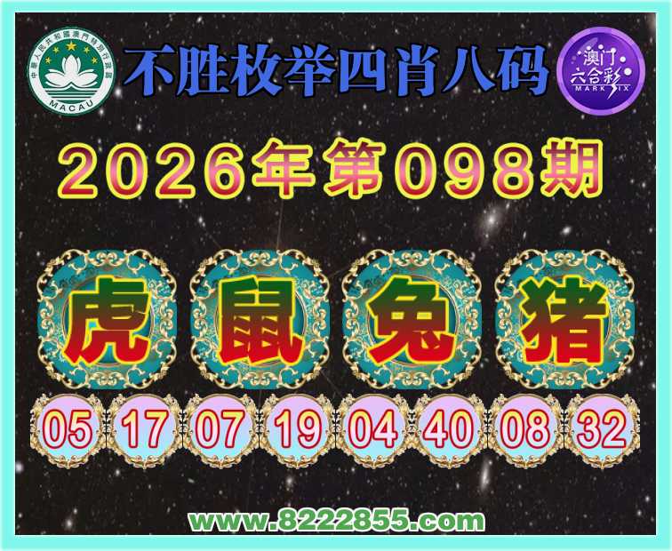 098期:《不胜枚举》 🧣四肖八码🧣【鼠兔猪】开:虎17