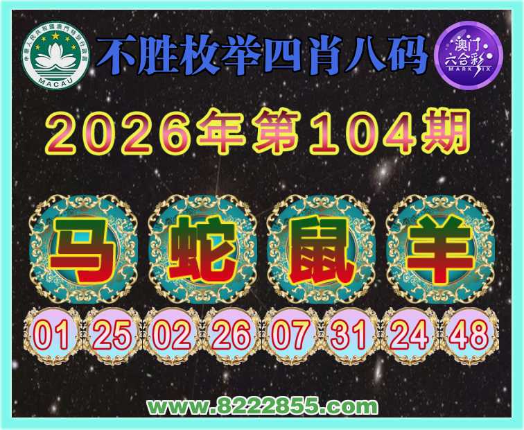 104期:《不胜枚举》 🧣四肖八码🧣【蛇鼠羊】开:马01准上榜高手