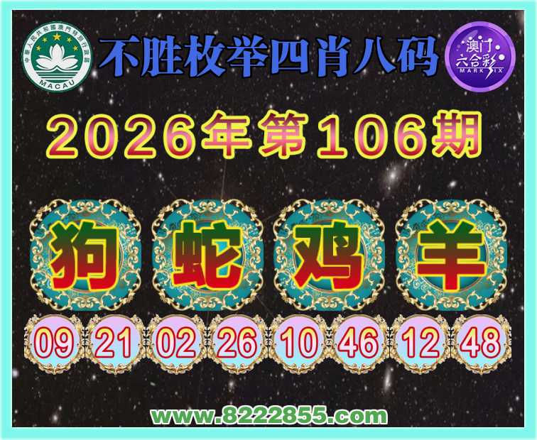 106期:《不胜枚举》 🧣四肖八码🧣【狗蛇羊】开:鸡22准上榜高手